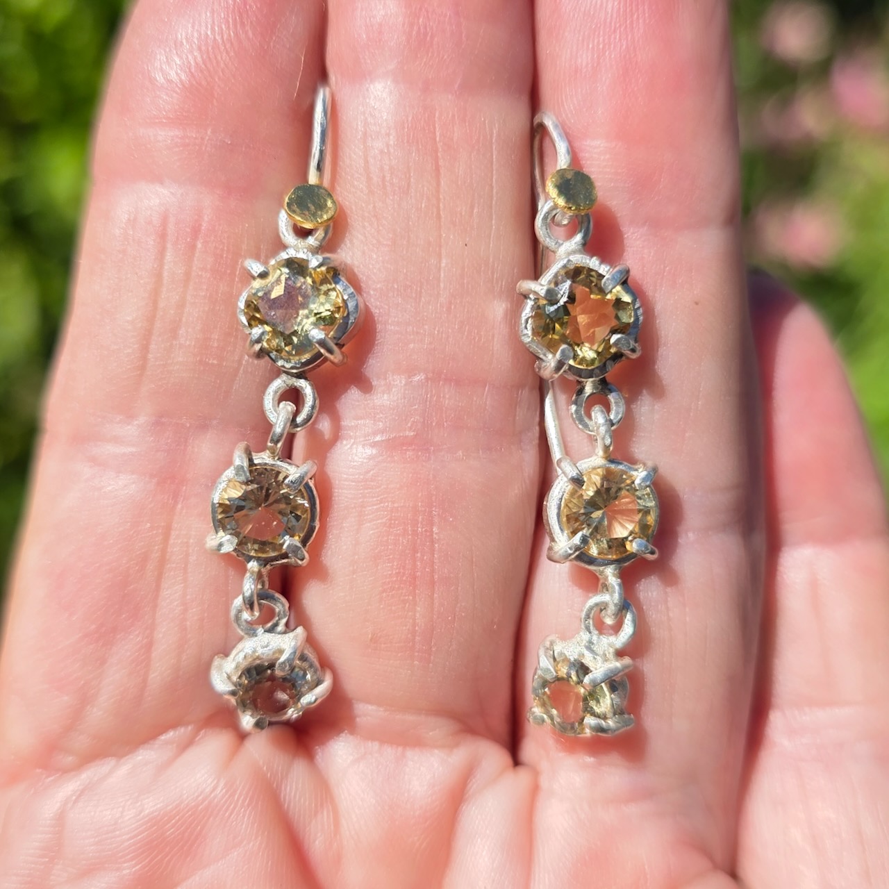 Citrine Dawn Light earrings; cushion and brilliant cut Brazilian citrine, silver and 24ct gold. One pair only. quantity