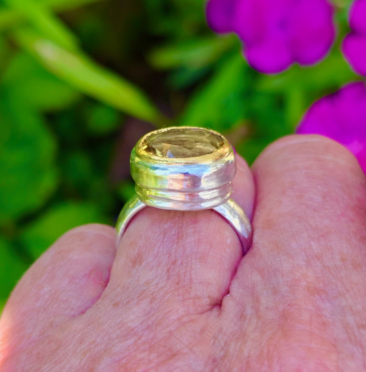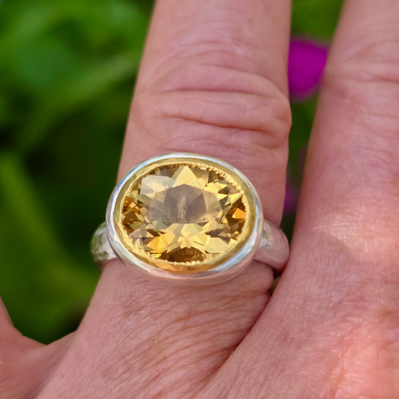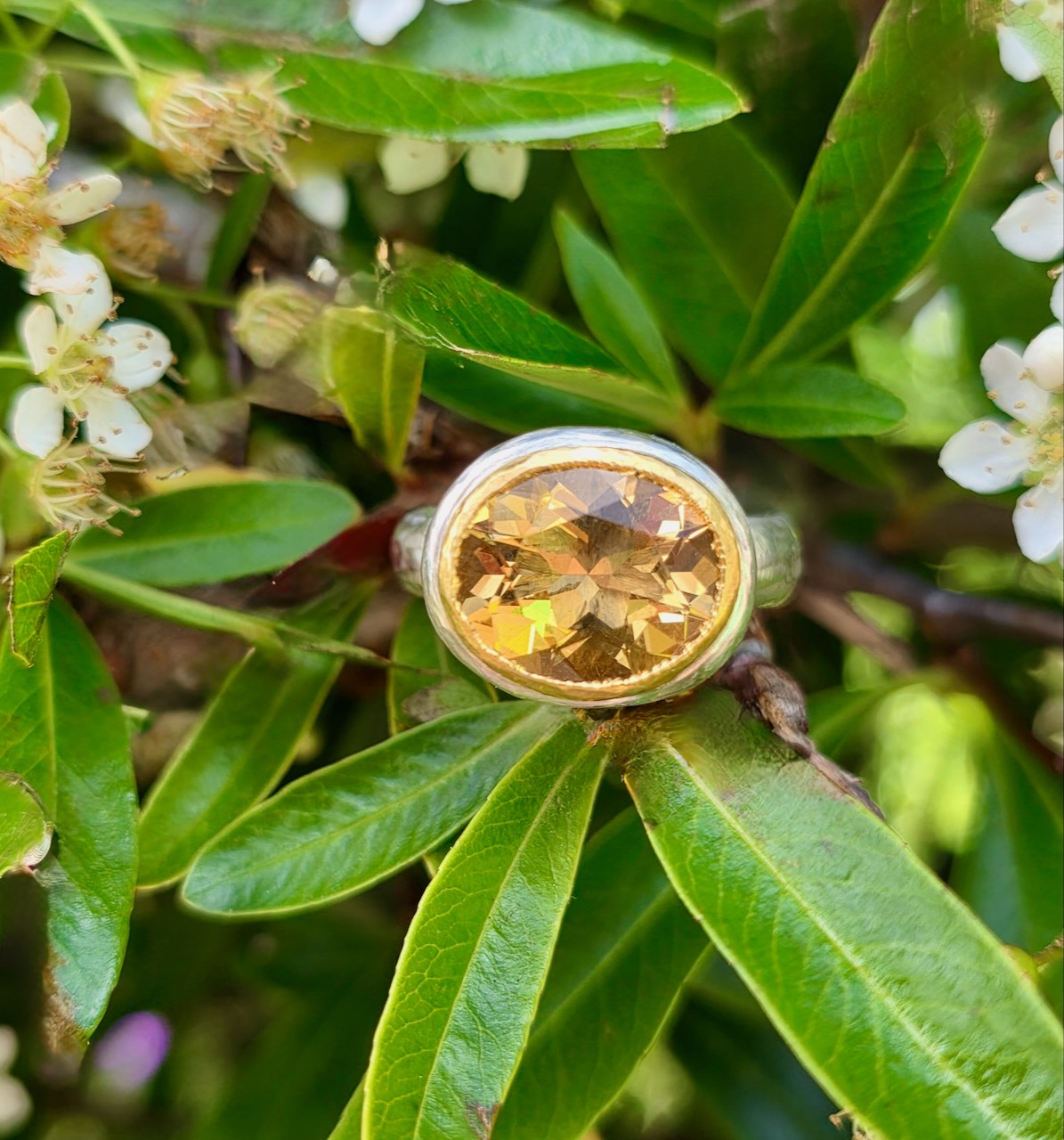 Contessa Ring; 12x10mm Brazilian citrine, silver and 24ct gold. Size R
