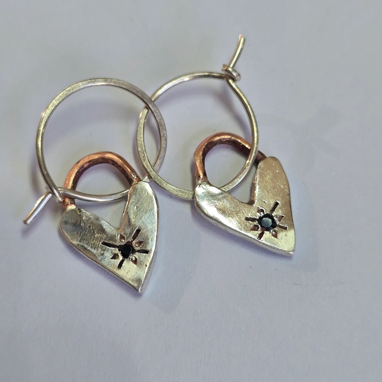 / Locket hoops; pure and sterling silver, copper and sapphire