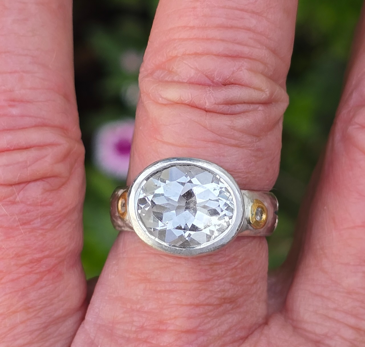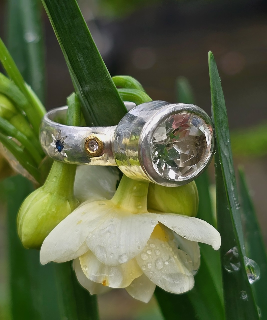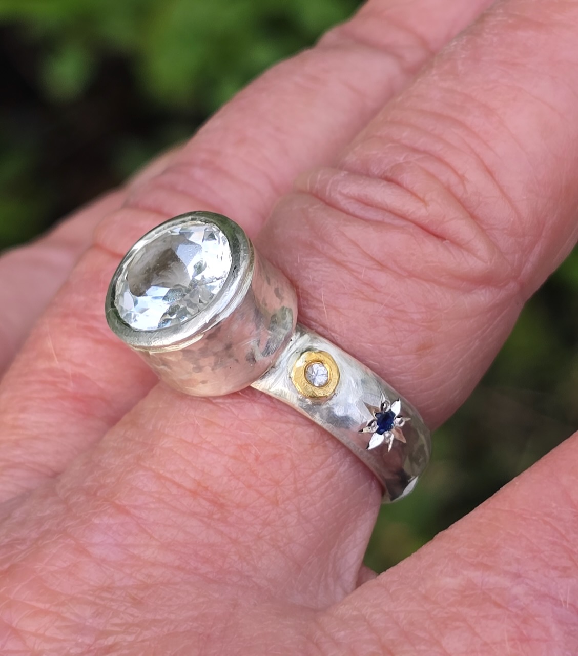 Star Struck Ring, 12 x 10mm Brazilian topaz and sapphires, fine silver, silver and 24ct gold quantity