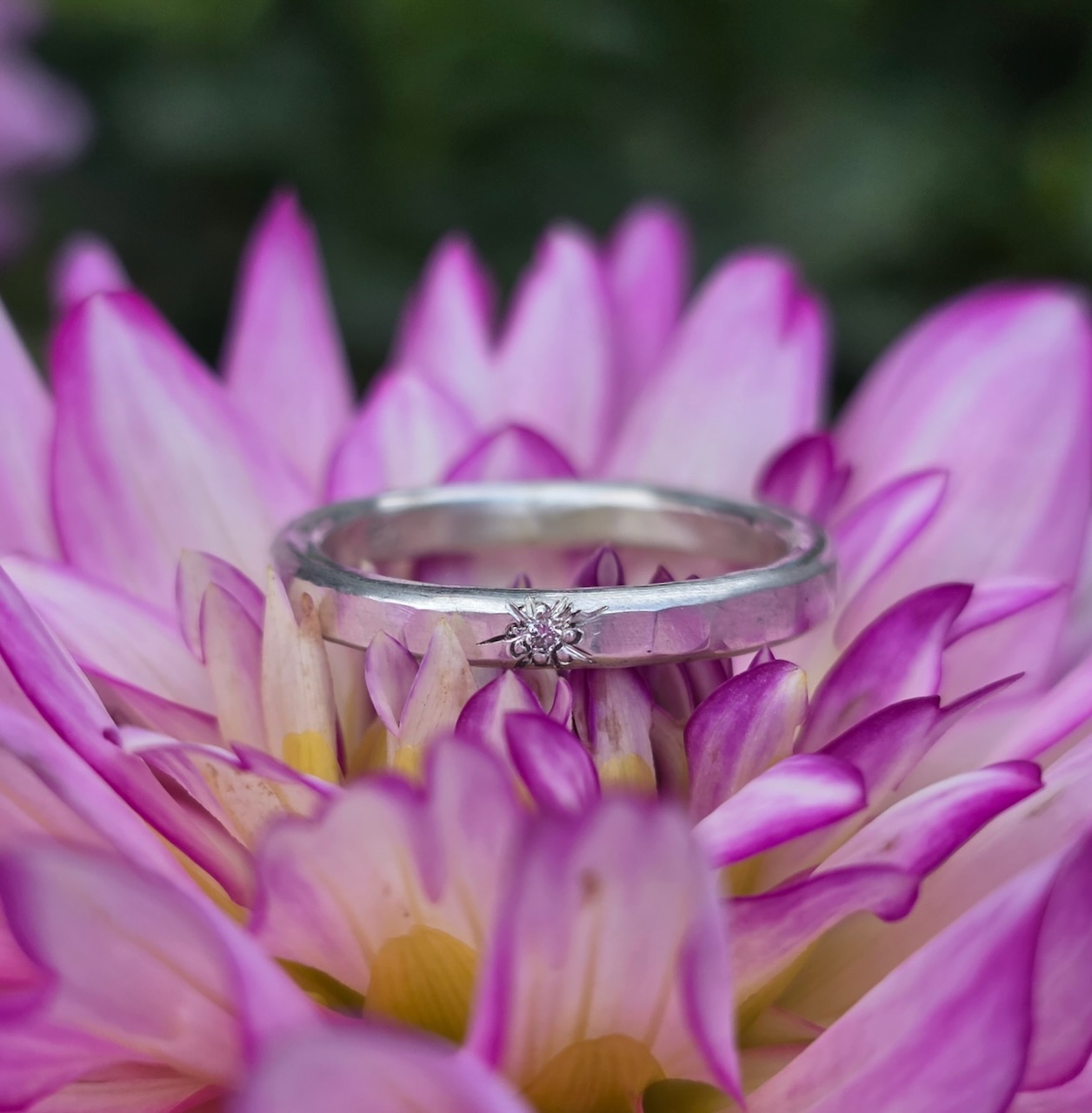 Hive ring; silver, 24ct gold, Cambodian green zircon and untreated sapphires.